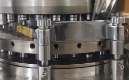 The rotary tablet press machine is a double-pressing automatically resolving piece-pressing machine which could make grain be pressed to be round piece, be carved characters, special shapes and double color piece prescription.